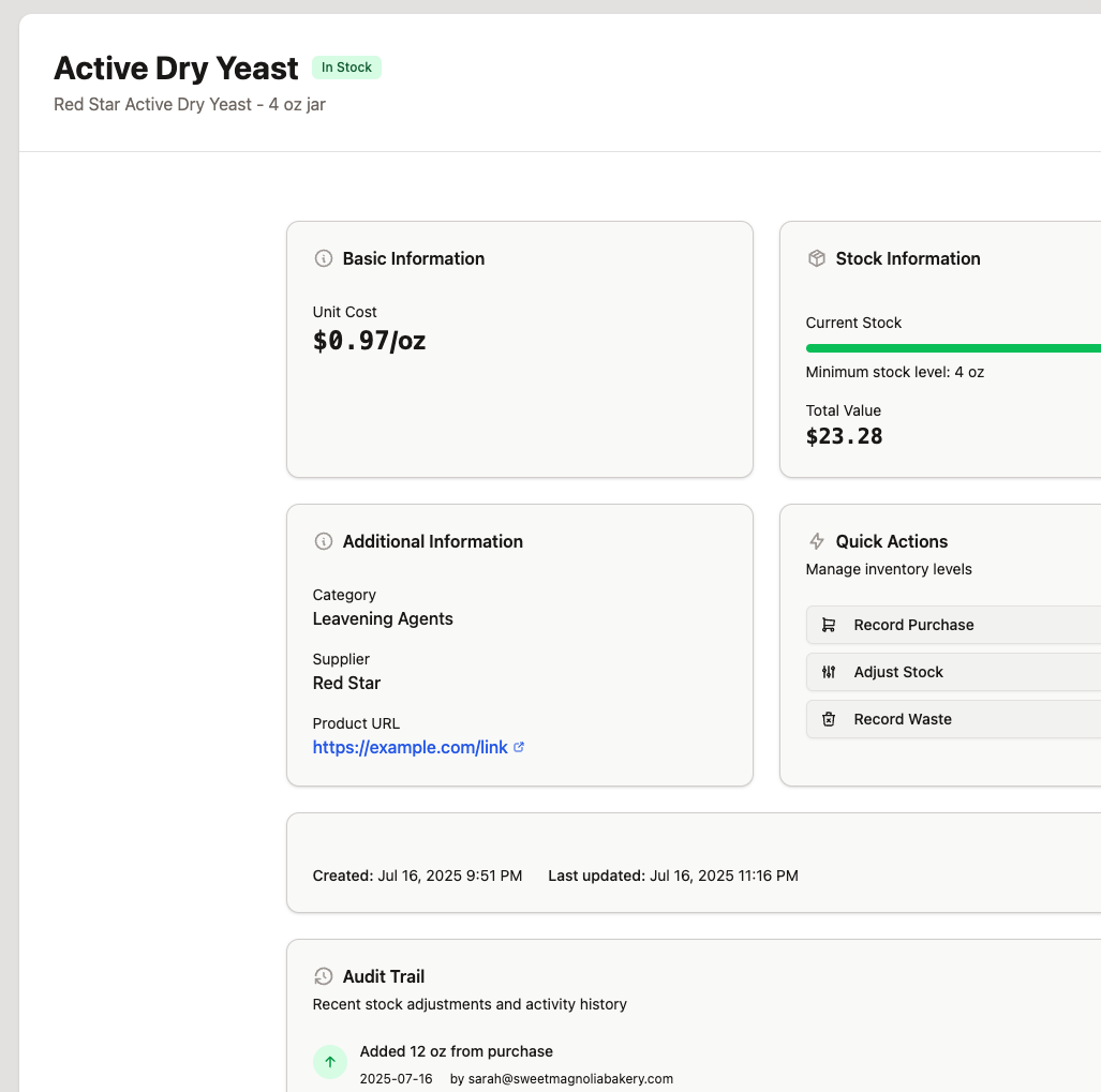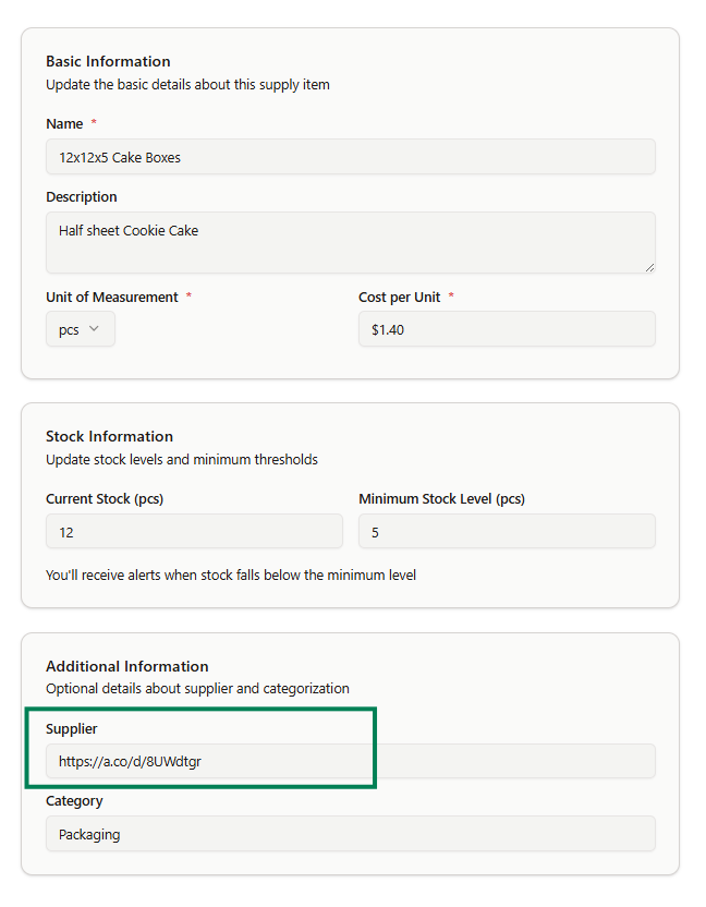 Absolutely! Under the ingredient and supply information can we get a field for a URL to link directly to our item for reordering? Right now, I’ve listed my URL in the “supplier” field so I can just copy/paste it in my browser when I need to reorder that item vs having to go search for it from a previous order with the supplier. Would be even more amazing if the link was operational for an easy click and go.