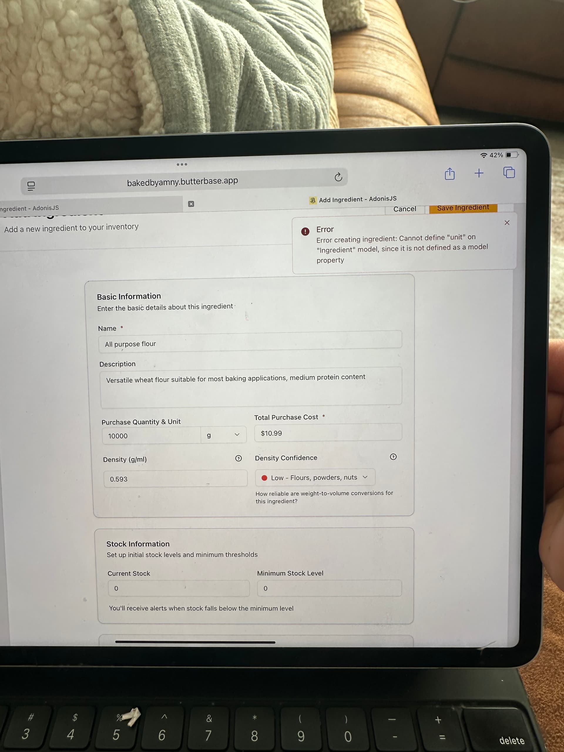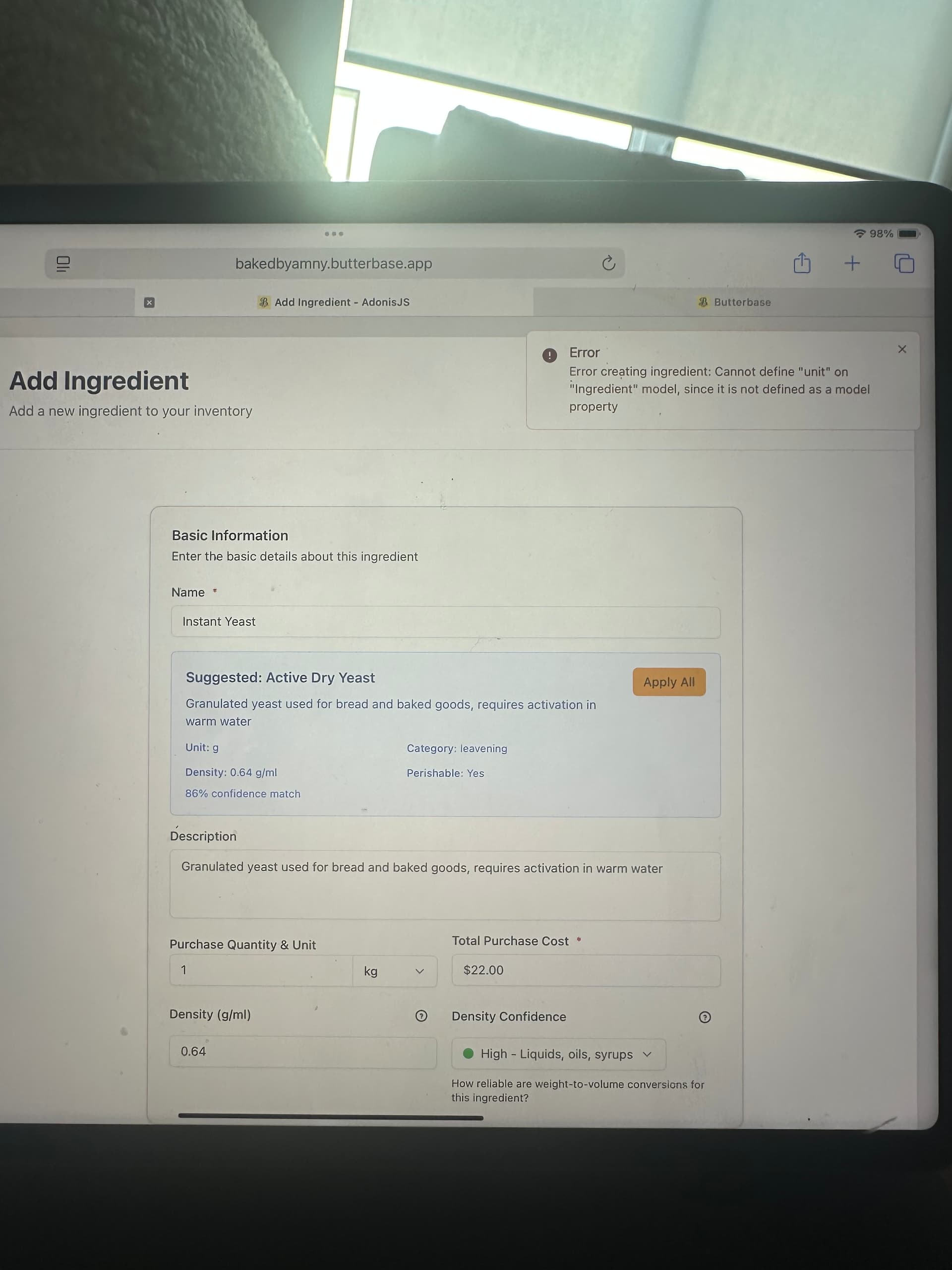 Hi! Me again. Running into the same issue but only with Active yeast. I’ve been able to add my other inventory without the same error.